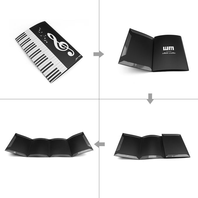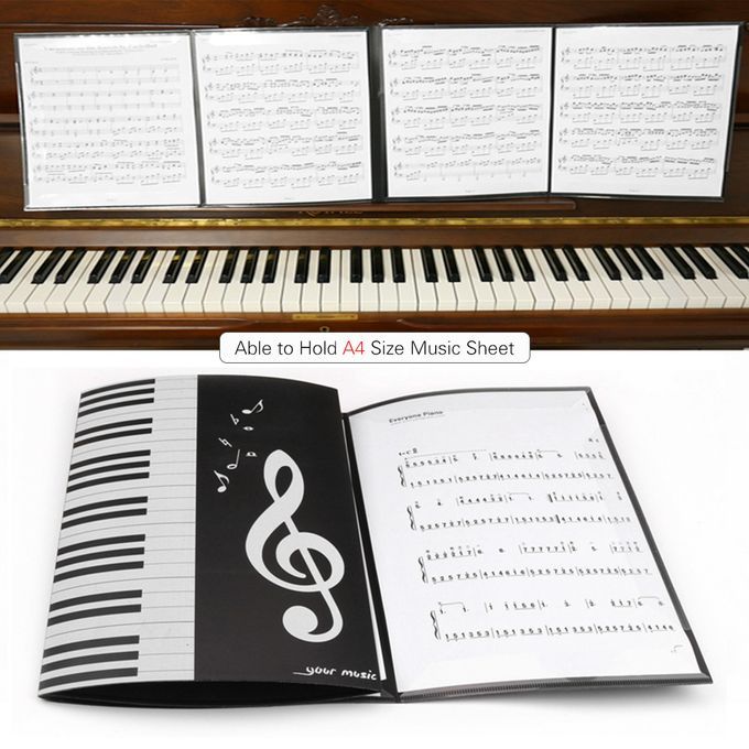 The music folder can keep open and display 4 pages of music sheet spread out simultaneously, no need to turn pages manually during playing music instruments.