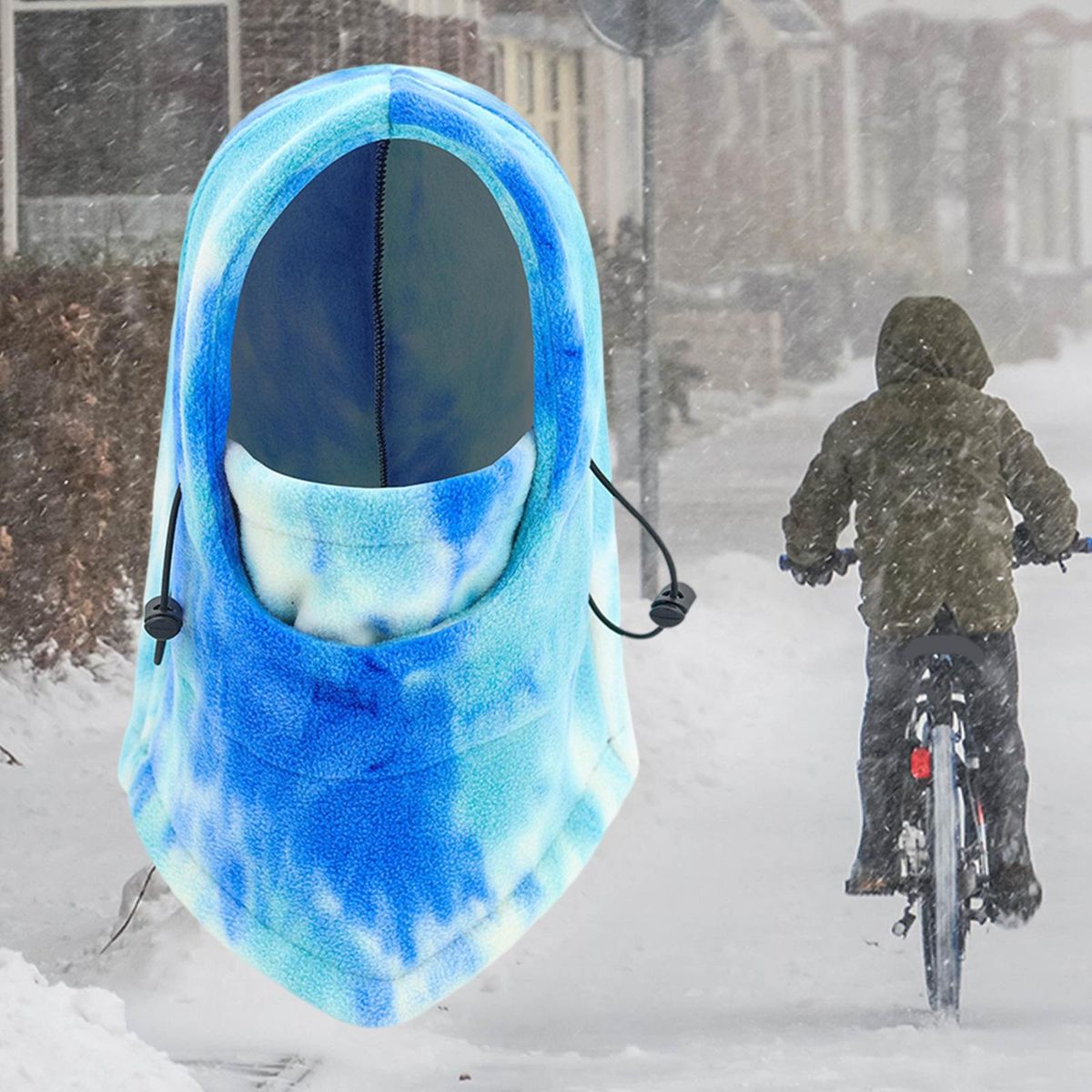 Polar fleece tie-dyed fabric has good elasticity and extensibility, the fabric is soft, skin-friendly and comfortable.360° fits the face, suitable for 0°-10° environment, keep warm and lock the temperature.The routing is neat, wear-resistant and durable, light and warm, not sultry and sweaty.Adjustable drawstring, comfortable, comfortable to wear, beautiful and durable.Suitable for outdoor riding, snowboarding, skating, mountain climbing, hiking, etc.