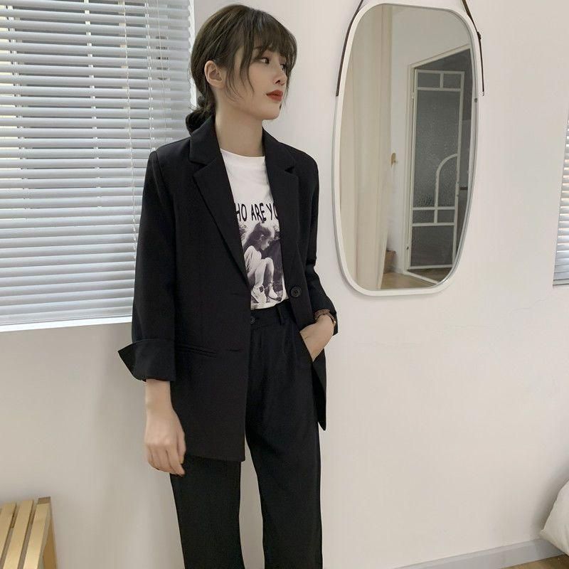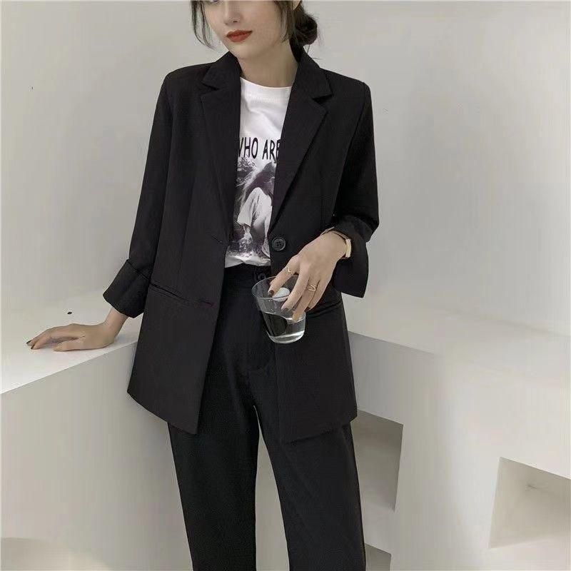 Buy Black Small Business Suit Coat Women's Spring and Autumn Korean Style New Loose Suit Coat Temperament Commute Business Working Formal Wear in Nigeria