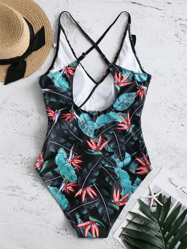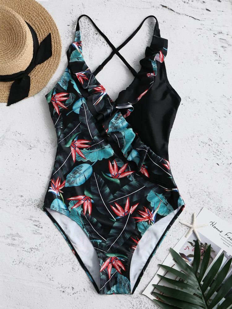 Buy Black V-Neck Backless Flora Criss Cross Ruffled Trim Swimwear in Nigeria