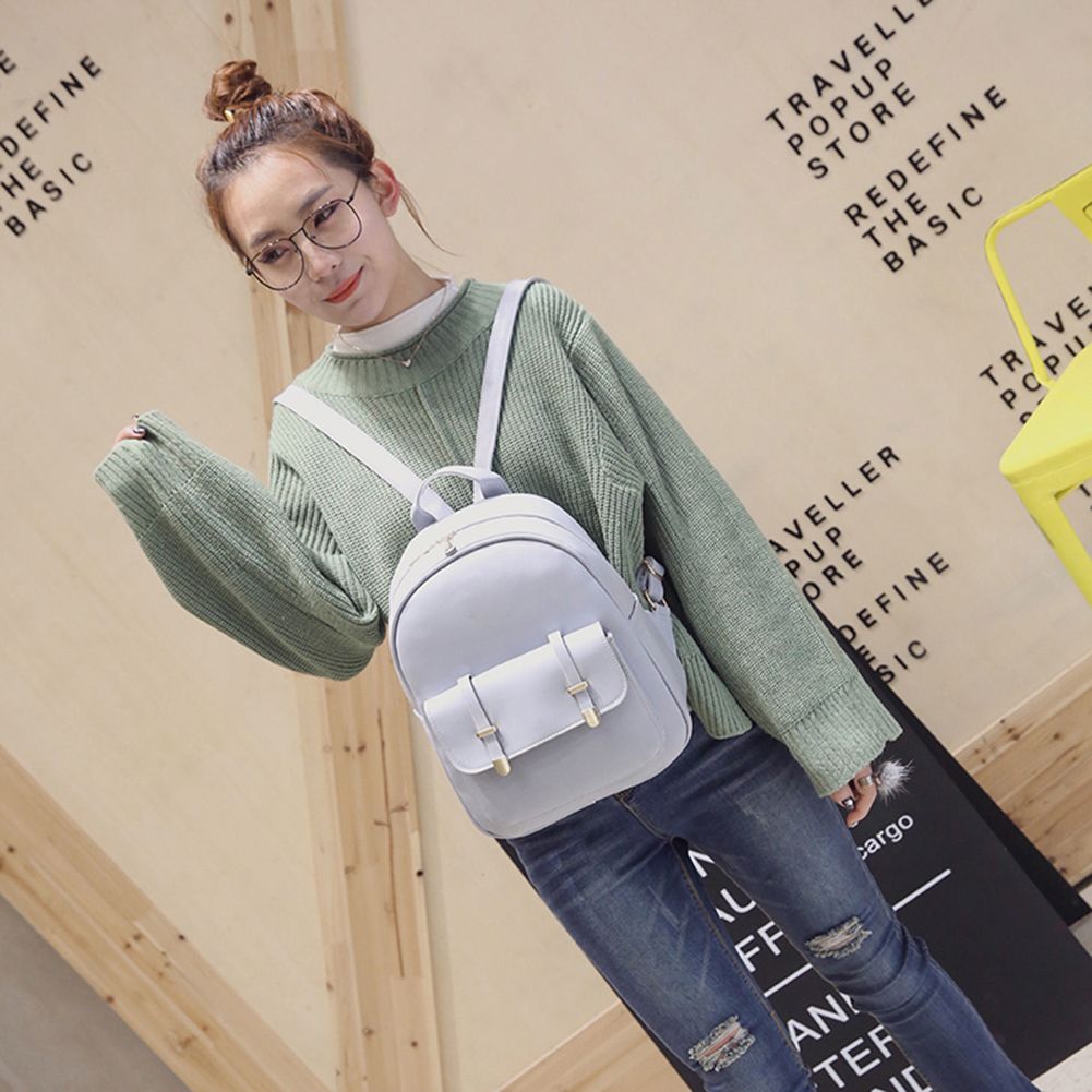 Buy (black)3pcs/Set Women PU Leather Backpack Female Solid in Nigeria