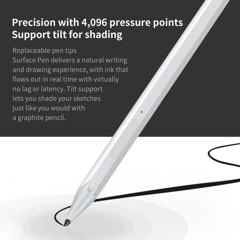 4096 Stylus Pen For Microsoft Surface Pro 3 4 5 6 7 Pro X Surface Go 2 Laptop Book Studio For HP ASUS Tablet ic Pen Touch Description: Tilt writing ic absorption Palm rejection Smoothly writing and drawing High Pressure 4096 level pen touch USB reachargeble fast charging Long battery life. Feature: 100% and high quality. 1.Designed specifically Stylus Pen for Surface series touch screen devices. 2.Can be Adsorption to a tablet,has quick erase and right mouse button. 2.LED indicator can show the state of charge,LED shows red when charging. 3.Replaceable nib, the sound is very small, only need a gentle turn when changing, More Smooth More Accurate, longer working time. 4.Better wireless connectivity, you don't need to connect it by bluetooth ,Just charge it with a charging cable. 5.You can safely put your hand on the screen for writing, don't worry that your hand will have a wrong touch. Specifications: Types :For Surface 3 Pro 3 and 4 Pro 4 Pro 5 6 7and Surface Book.... Size: length 142mm Pen body diameter: 9.2mm Nib diameter: 2mm Working time: 50 hours Charging interface:Micro USB Color Available : Black, Silver (optional) Compatible with the following models: 1.Surface For Surface Go For Surface Pro 3 For Surface Pro 4 For Surface Pro (2017) For Surface Pro 5 For Surface Pro 6 For Surface Pro 7 For Surface Book For Surface Laptop For Surface Stu-dio 1/2 2.A-SUS For A-SUS Transformer Mini (T102HA) For A-SUS Transformer 3 Pro (T303UA) For A-SUS Transformer 3 (T305CA) For A-SUS Transformer Pro (T304UA) For A-SUS ZenBook Flip S (UX370UA) For A-sus Vivobook Flip 12 R211NA, For Vivobook Flip 14 R211NA 3.H-P For H-P Envy 17-aexxx For H-P Envy x360 15-bp0xx For H-P Envy x360 15-bq0xx For H-P Pavilion x360 11m-ad0xx For H-P Pavilion x360 14m-ba0xx For H-P Pavilion x360 15-br0xx For H-P Spectre x2 12-c0xx For H-P Spectre x360 13-ac0xx For H-P Spectre x360 13-ae000 For H-P Spectre x360 15-bl0xx 4.S-ONY For S-ONY VAIO Z Flip (VJZ13BX0211B) 5.A-CER For A-cer Spin 5, For A-cer Nitro 5 Spin Note: 1.Transition: 1cm=10mm=0.39inch 2.Please allow 0-1cm error due to manual measurement. pls make sure you do not mind before you bid. 3.Due to the difference between different monitors, the picture may not reflect the actual color of the item. Thank you! Package includes: 1x Surface Stylus Pen 1x Charging Cable 3x Pen Tips