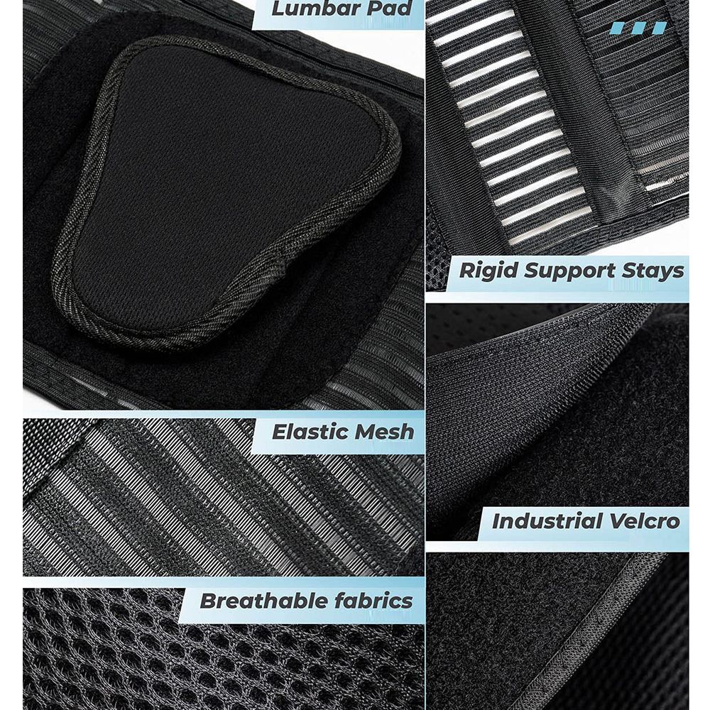 About this item FORGET ABOUT PAIN - Back Brace gives you immediate & lasting relief from a herniated disc, sciatica, back pain, sore muscles and other back conditions. Wear it when you walk, bend or stretch. Enjoy the freedom of movement! SUPPORT YOU BADLY NEED! - medical brace incorporates an adjustable lumbar pad to provide extra compression for your lower back. Vertical support stays stabilize your back and prevent rolling. Get the support you need to stay active! BE COMFORTABLE AND CONFIDENT AGAIN - Breathable fabrics used in the production of along with its adjustable, perfect fit design makes it comfortable and easy to wear under any clothes. Tired of bulky devices? YOU DESERVE THE BEST - When you buy brace, you opt for quality. We don't just say it. We guarantee the highest quality product because your health deserves the best.Feel Comfortable Sitting, Walking, Or LiftingThe support belt provides an external source of stability so you're able to perform any of life's daily movements without the slightest stiffness. Whether you want to put your shoes on, do chores around the house, or lift weights at the gym.Within a few minutes of putting the belt on you could be feeling better than you have in the last few years. Heck, you could begin doing the things you love again: playing basketball, going for a run, or gardening.Imagine the possibilities. How freeing it would be to forget about the pain and start functioning normally. Isn't that what you want?A Versatile Fit For Everyday UseIf you haven't tested other back support belts on the market then you wouldn't believe how much they limit you from moving around. Not only can you barely bend over in them, they are also extremely bulky and impossible to wear under your clothing.With the belt, our aim is to provide your back with enough support to help soothe the pain while still allowing your torso to twist and turn naturally. This is partly accomplished by the dual adjustable compression straps which give you the ability to loosen the belt if you prefer more mobility and tighten it if you need more stability.You'll especially enjoy how light and soft the belt feels after using it for the whole day. It's even slim enough to be worn under your clothes without it showing.