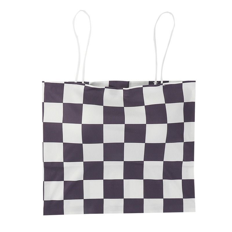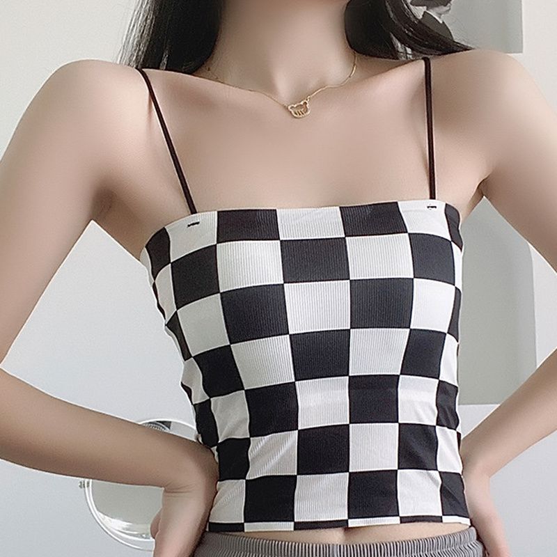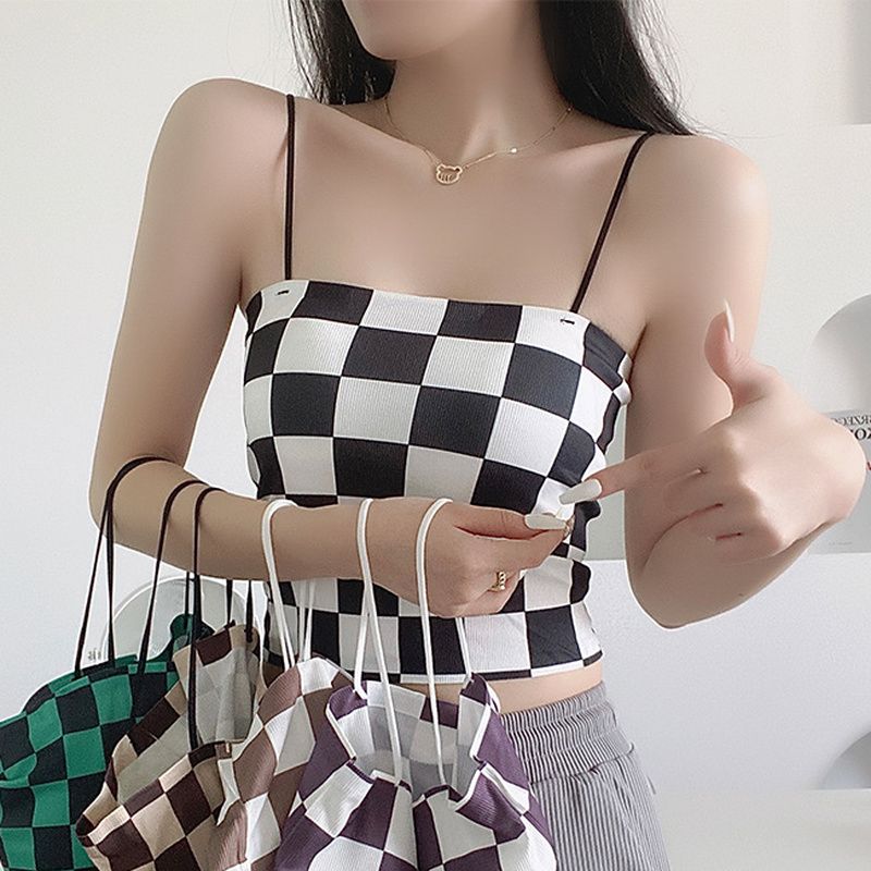 1X Fashion Checkerboard Ladies Crop Tops Women Plaid Threaded Ice silk Tank Tops Slim Backless Short Vest Lingerie Female Tops