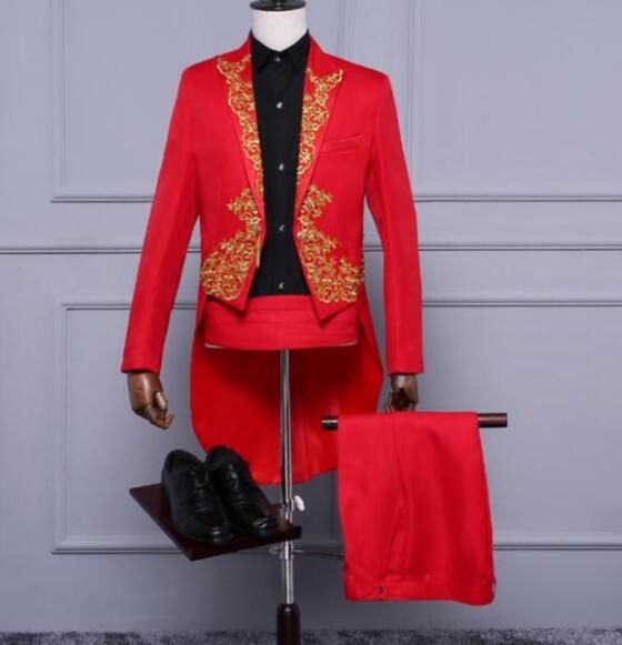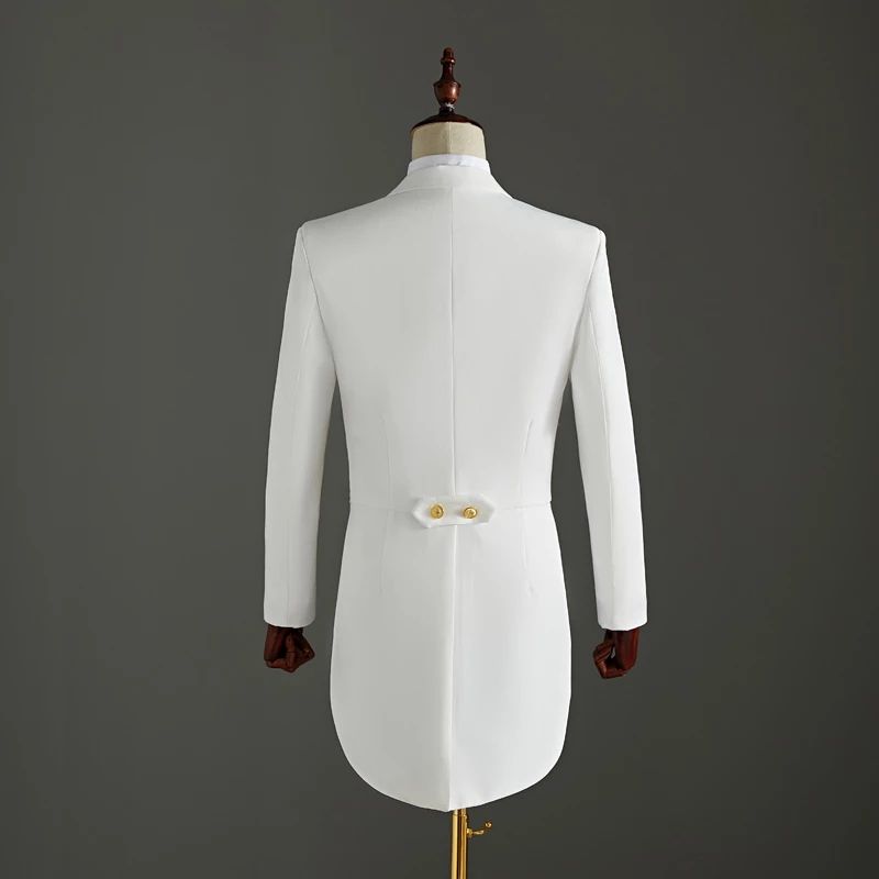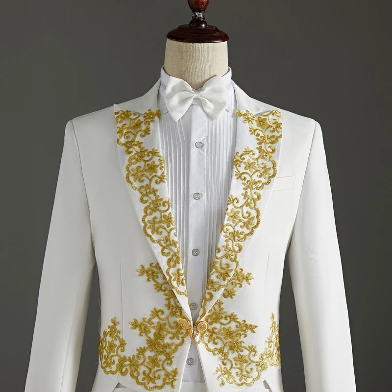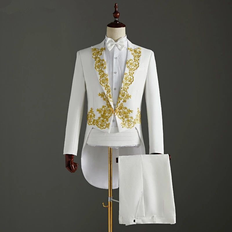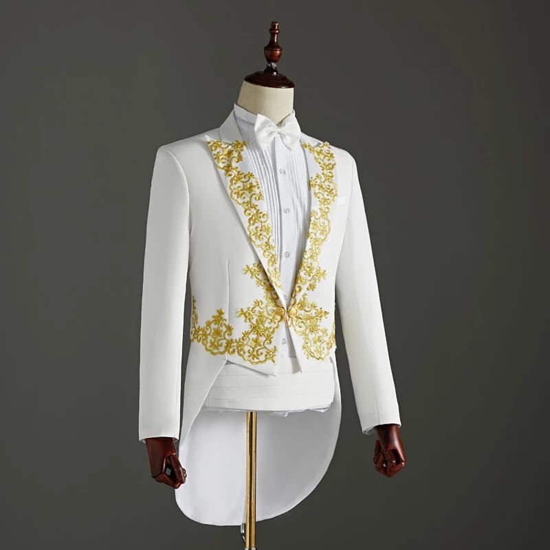 1X (Jacket+Pants) 2 Piece Wedding Suit White Embroidery Tailcoat Set Singer Host Swallowtail Costumes Magician Chorus Stage Suits