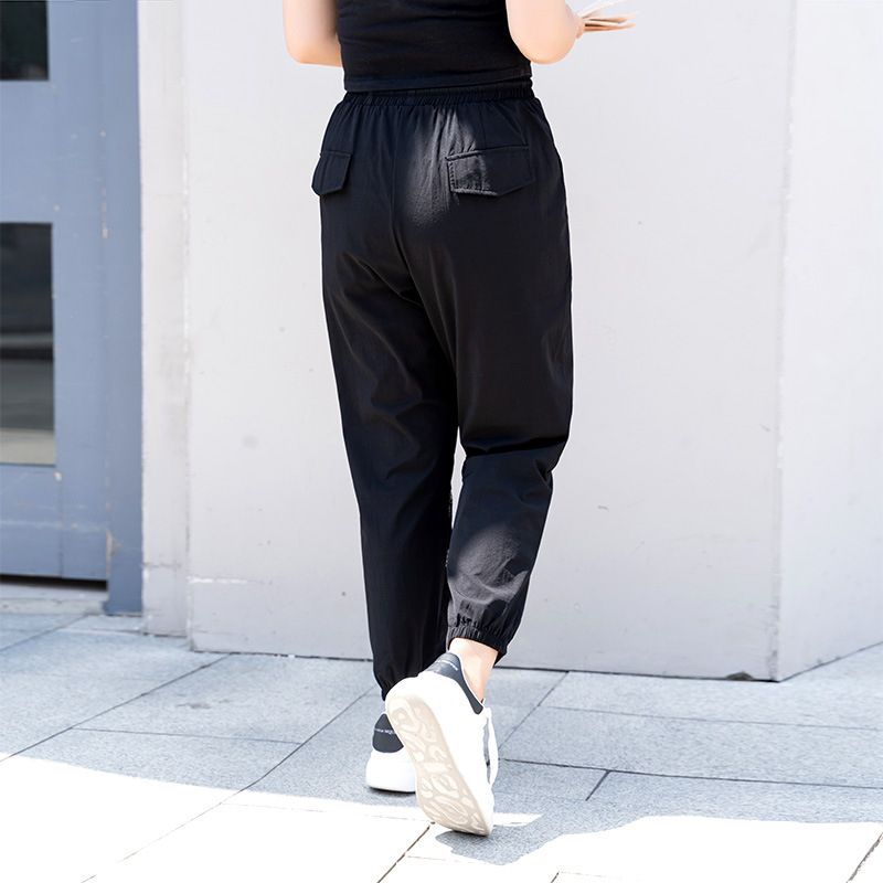 1X New 2022 Ladies Spring Autumn Plus Size Jogger Pants For Women Large Loose Black Belt Sports Trousers 7XL