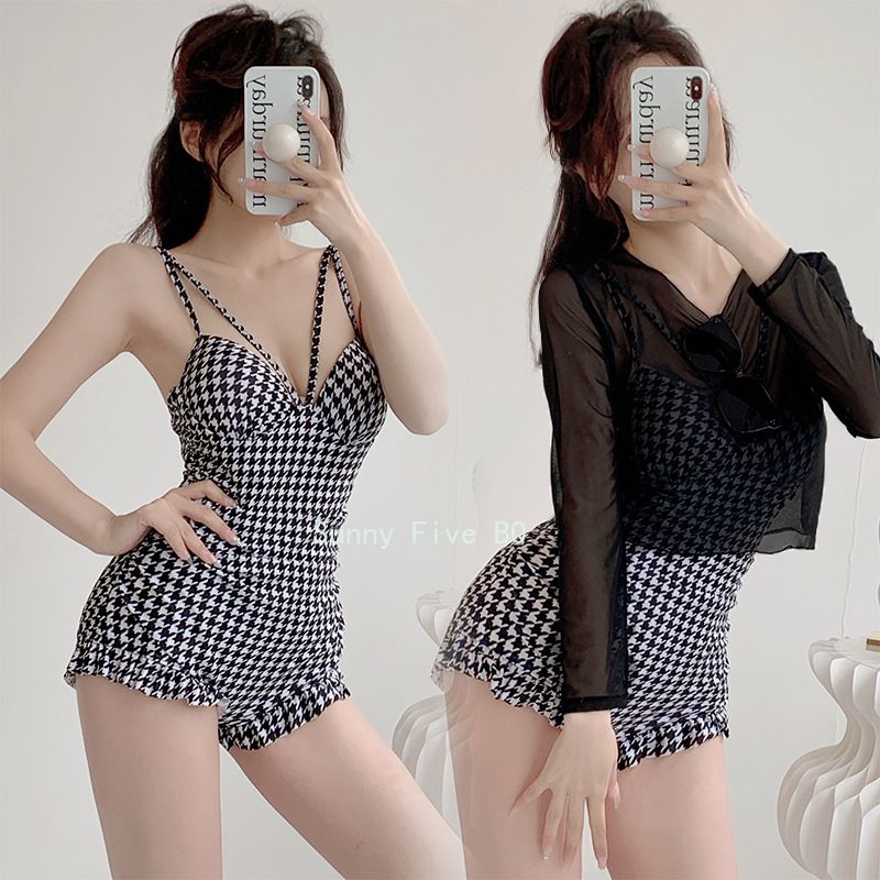 1X One Piece Swimsuit Women Long Sleeve 2piece Plaid Fashion Swimwear Women 2022 Luxury Beach Sun Protection Swimsuit