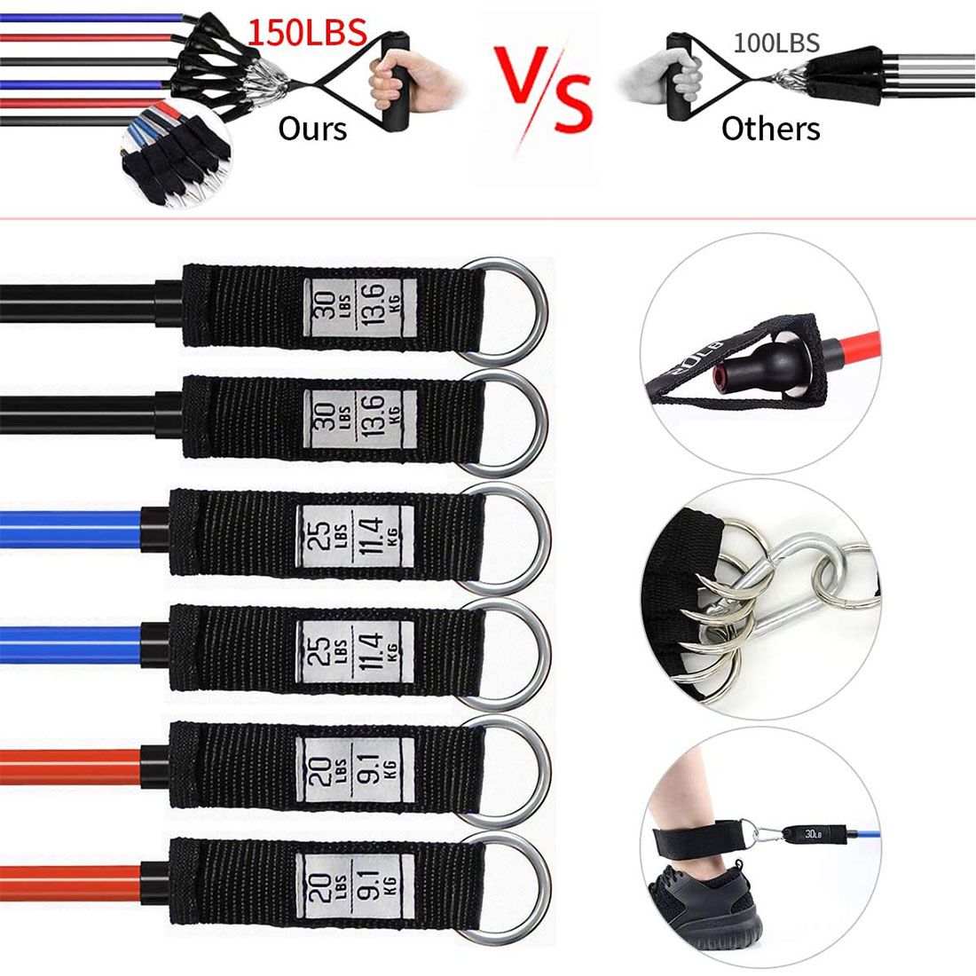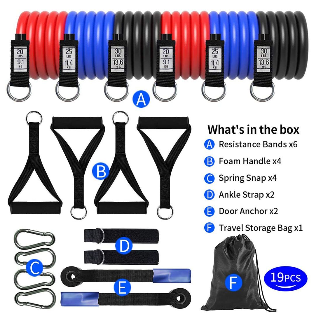 1X Resistance Bands Set Pull up Exercise Bands Handles Door Anchor for Men Women Legs Arms Chest Train Workouts Home Gym Equipment