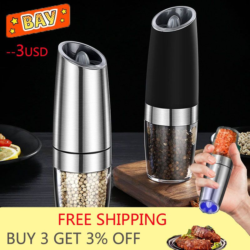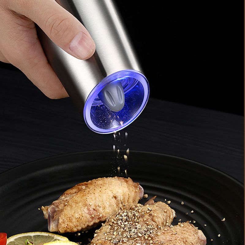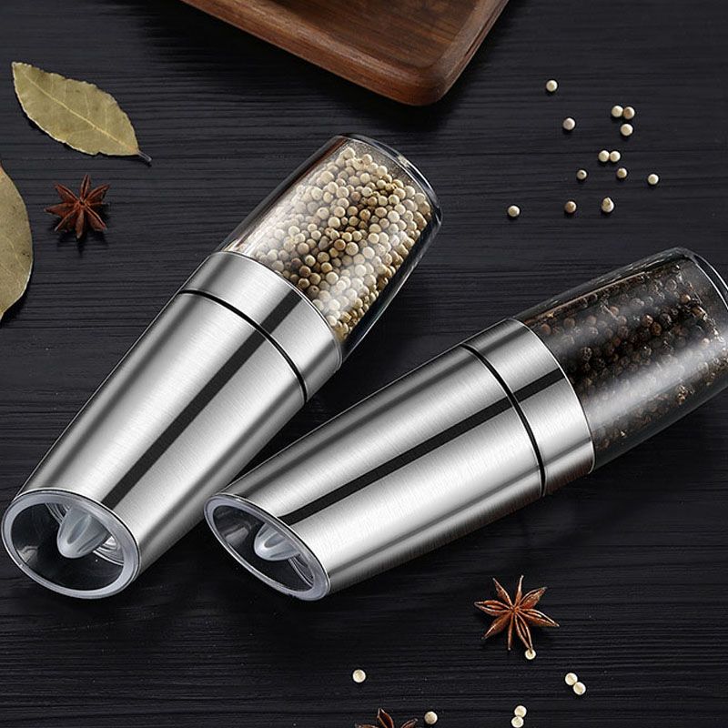 1X Stainless Steel Electric Black Pepper Mill Automatic Gravity Salt and Pepper Grinder Shaker Kitchen Weed Spice Grinder Tools