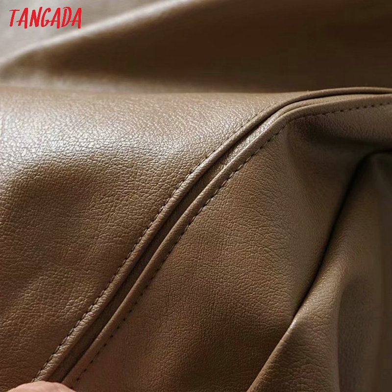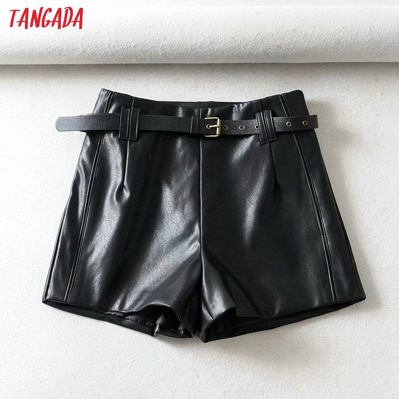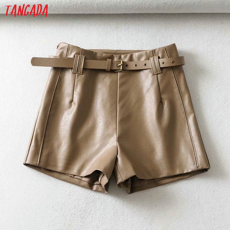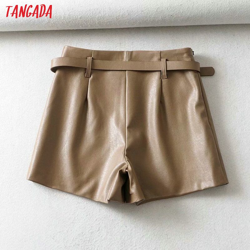 1X Tangada women brown pu leather skirt shorts with belt zipper female high waist ladies casual shorts 1Y07