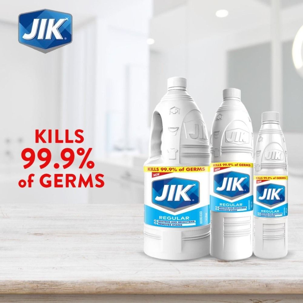 JIK Perfumed Stain Remover and Germs Killer is a household bleach. It's formulation contains extra whitenin g power and it is safe for use on most colorful washable fabrics inducing cotton, nylon and polyester.