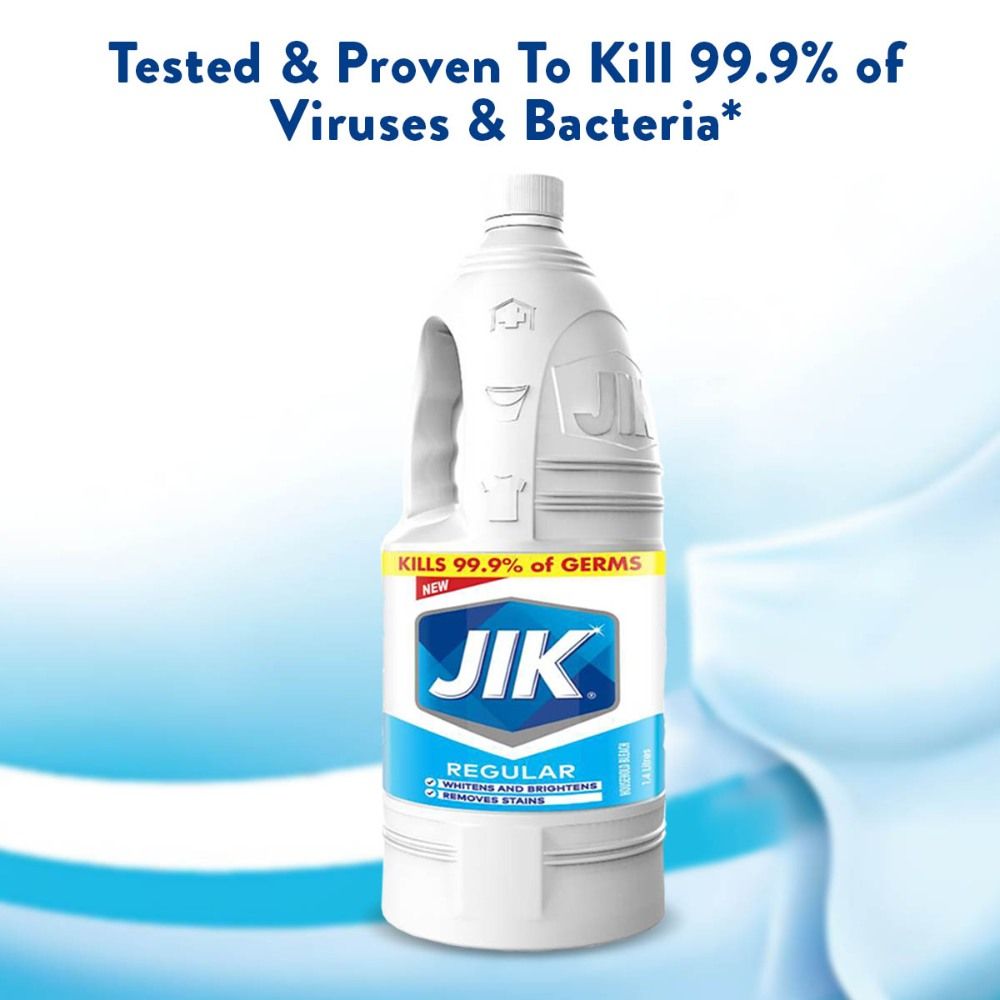 Mix 1/4 cup (62.5ml) of JIK in a 5-liter bucket of water.Soak stained items for 5-15 mins and then rinse.Wash with detergent as normalTo clean, sanitize and kill mildew: Mix 1/2 (125ml) of JIK in 5-liter water. Use to wash floors, walls, showers, kitchen counters, fridges, and dustbins Kill germs and sanitize: Pour JIK into the toilet bowl, down drains and plugholes, in kitchen sinks and basins. Do not use with other toilet cleaners.
