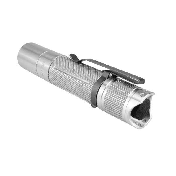 with anti-reflective coating Reflector: Orange Peel Reflector Carrying Clip included Waterproof: IPX-8 waterproof 2 meters : Silver Weight: 80g without Size: 120mm x 24mm(length x body diameter)