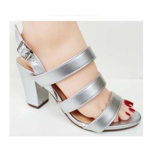 Buy Block Heel Female Leather Sandal - Silver in Nigeria