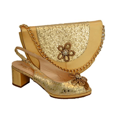 Buy Block Heel - Shoe And Bag - Gold in Nigeria