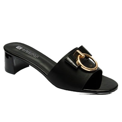 Ayomi Leather Slipper With Gold Buckle Detail - Black
