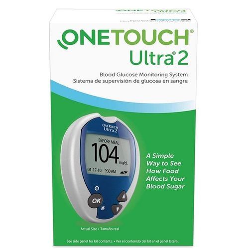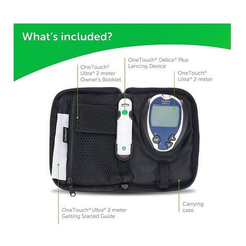 OneTouch, the #1 Pharmacist Recommended Brand, helps you start or continue your blood sugar testing journey with confidence using this diabetic testing kit. Whether you're a beginner or have been managing your diabetes for years, you can experience simple blood sugar testing by adding the One Touch Ultra 2 meter to your daily routine. This blood glucose monitor kit has the essentials needed to test your blood sugar levels, including one diabetic meter, one Delica Plus lancing device, 10 Delica Plus lancets, and a glucose meter case for compact, on-the-go testing. The OneTouch Ultra 2 meter has a large, easy-to-read display with a backlit screen for nighttime testing. This blood glucose test kit is compatible with OneTouch Ultra test strips, which have a quick testing time of just 5 seconds for accurate results, and DoubleSure® Technology that automatically checks blood samples twice. For more than 40 years, LifeScan has been a global leader in blood glucose monitoring for over 20 million people, offering premier blood glucose monitors, diabetes testing strips, and blood lancets. Our mission is to create a world without limits for people with diabetes. Explore the OneTouch brand for trusted diabetes products defined by simplicity, accuracy, and trust.Large, Easy-To-Read Display: A simple blood sugar monitor for easy testing, with a large, backlit display, easy-to-read numbers, and smart technology that turns off after two minutes. Includes the OneTouch Delica Plus lancing device, 10 OneTouch Delica Plus lancets, and carrying caseUltra-Fast Results: Get quick, reliable blood sugar test results in just 5 seconds using this diabetes testing kit. The OneTouch Ultra 2 meter is compatible with OneTouch Ultra test strips, which only need a tiny blood sample on either side of the test strip to provide accurate numbersBefore & After Meal Tracking: The OneTouch Ultra 2 meter stores your blood sugar level averages before and after meals. Allows you to see the effects of food and portion choices over time and make changes to manage your diabetesNumber One Pharmacist Recommended Brand: Our commitment to helping you manage your diabetes is proven in the quality of our products. Explore the OneTouch brand for trusted products and premium blood sugar support