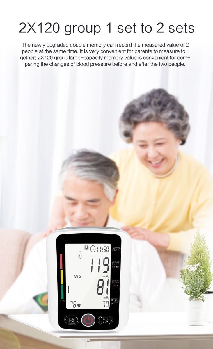 The clock feature Intelligent pressure LCD digital display,legible An irregular heartbeat tips WHO warning message function The overpressure protection function. Voltage power detection,Low power consumption Double mode,each of the 90 set of measurements of memory