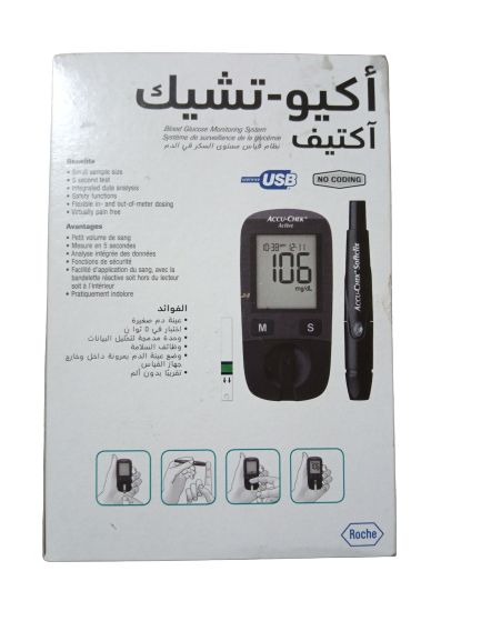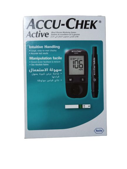 Accu-Chek Active provides effective blood glucose measurement and monitoring. The meter requires not more than 5 seconds to measure and deliver results that correlate with a lab test in an excellent way. Only 1-2 micro-litre (very small drop) of blood is required to run a blood glucose test. Measurement is in mg/dl. To get the reading in mmol/L = Divide mg/dL value by 16.