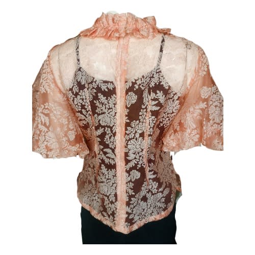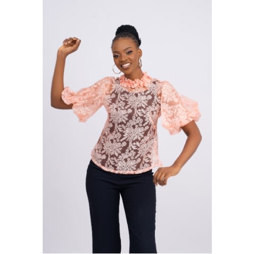 Buy Blouse With Ruffled Neckline - See Through With 180° Flared Ball Sleeve - Peach in Nigeria