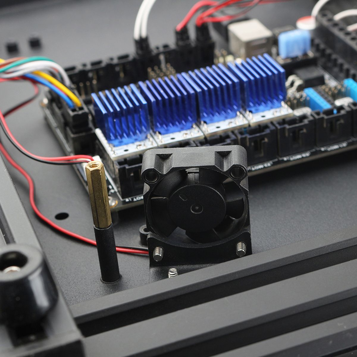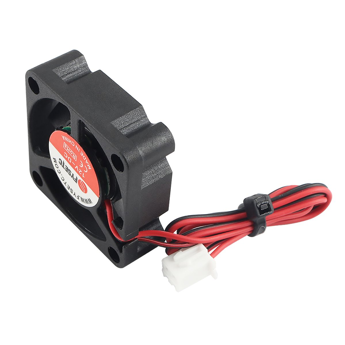 The fan has two sides, but the side with the sticker must always face the hot end (not visible when the fan is installed). Otherwise, the cooling will not work properly.
