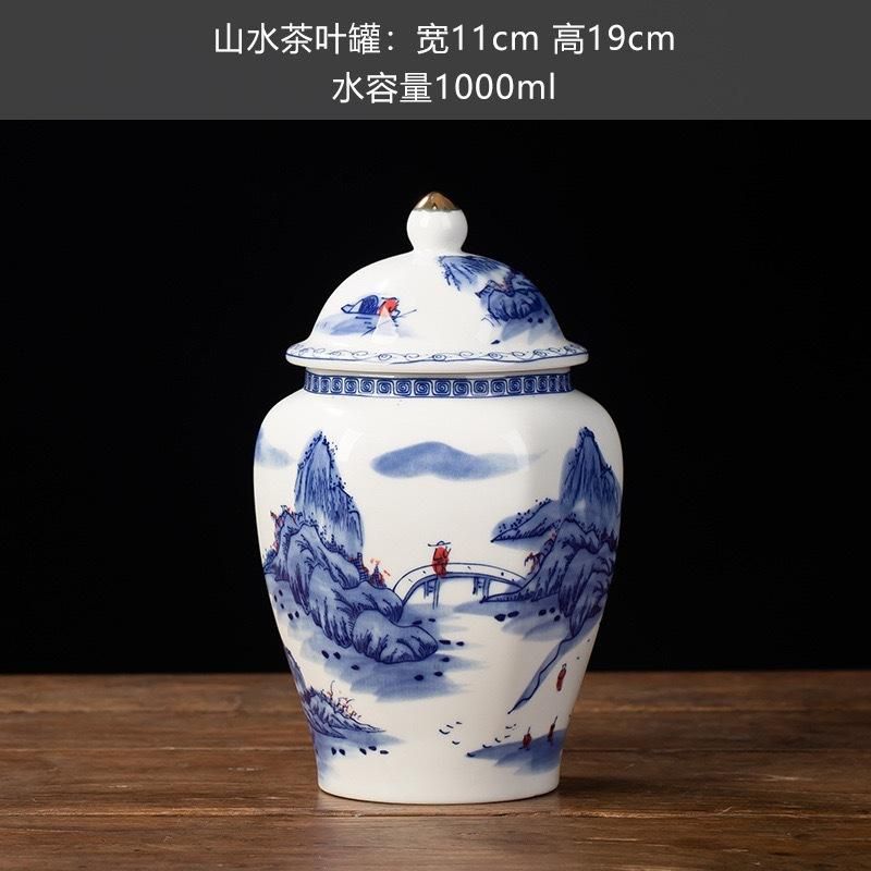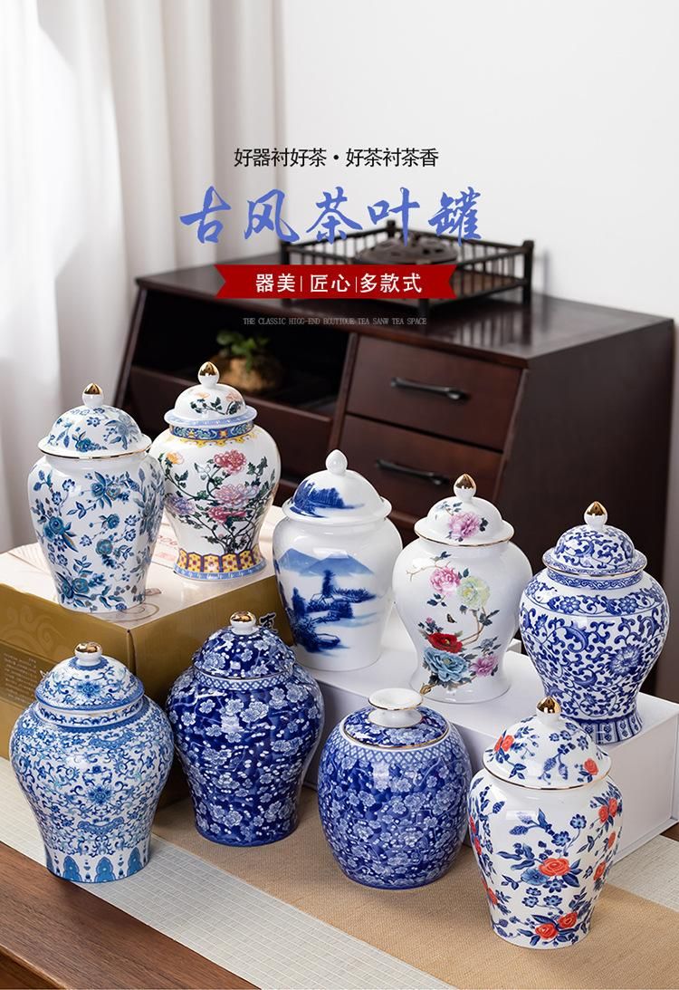 Buy Blue and white ceramic general cans moisture-proof sealed cans boutique high-end tea cans home gift tea cans wholesale General Jar - Magnolia in Nigeria