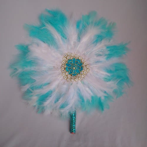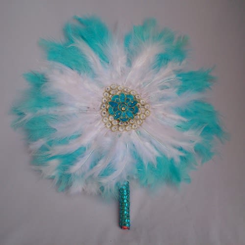 Buy Blue And White Feathers Bridal Handfan in Nigeria