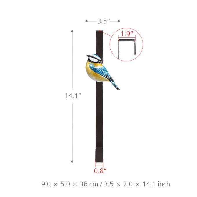 This door hook is made of iron material, which can last for a long time. The size of the hook is 3.5 inches in length, 2 inches in width and 14.1 inches in height, a perfect size for your door. This door hook do not need any tools. It can be easily put on the door. And you do not worry about the door wreath hook will scratch your door. This door hook is perfect to store your hat, coat, purse, or other items. Perfect to decor your bathroom, living room, bedroom, etc.