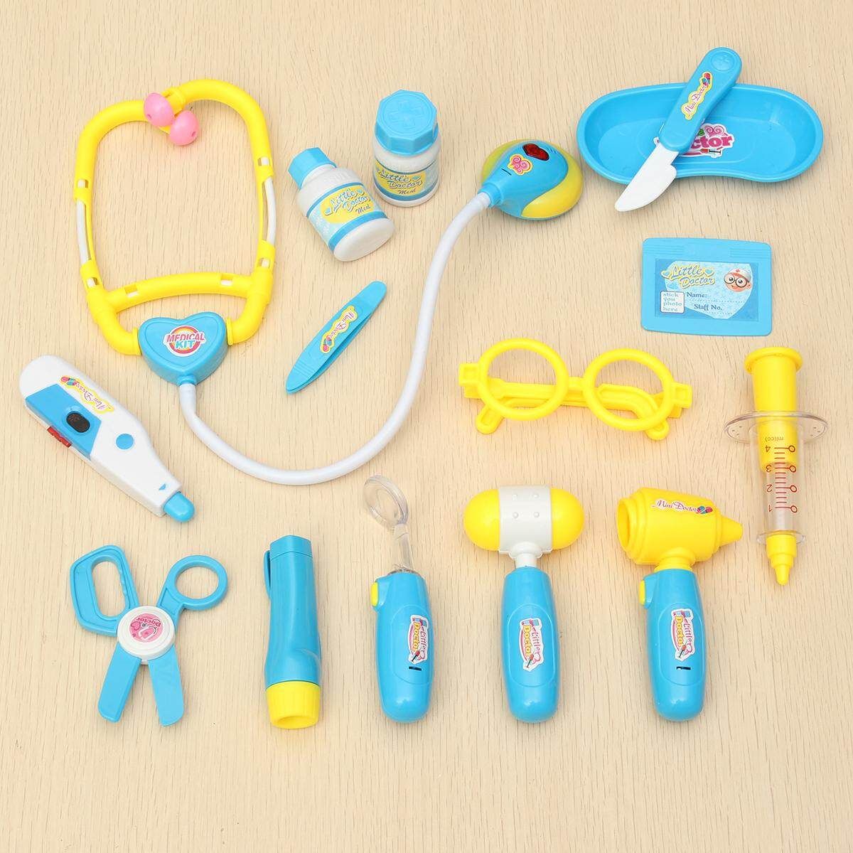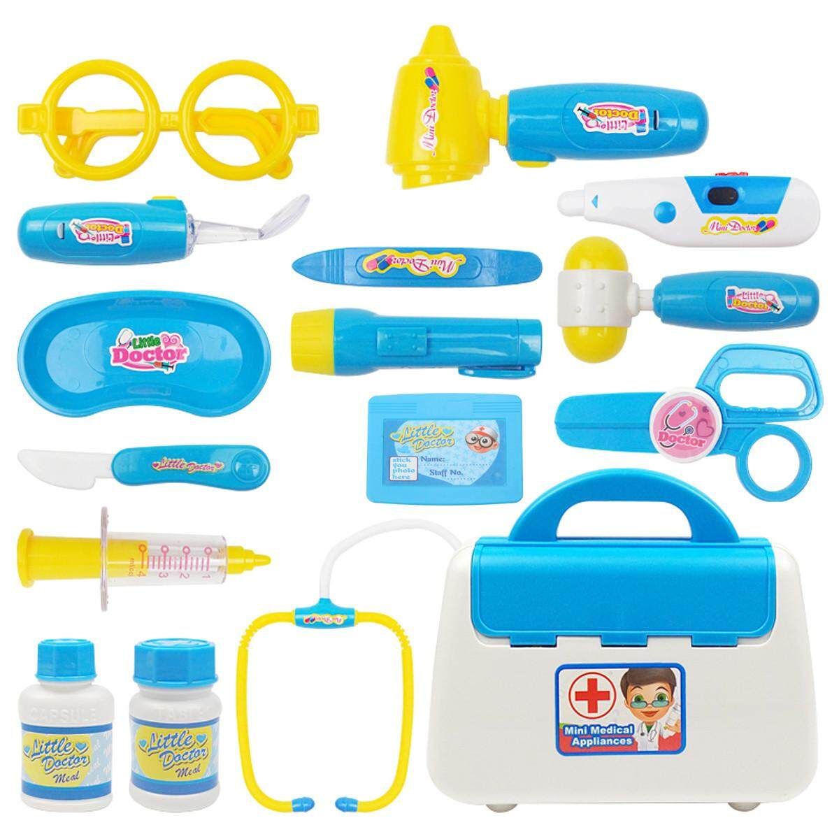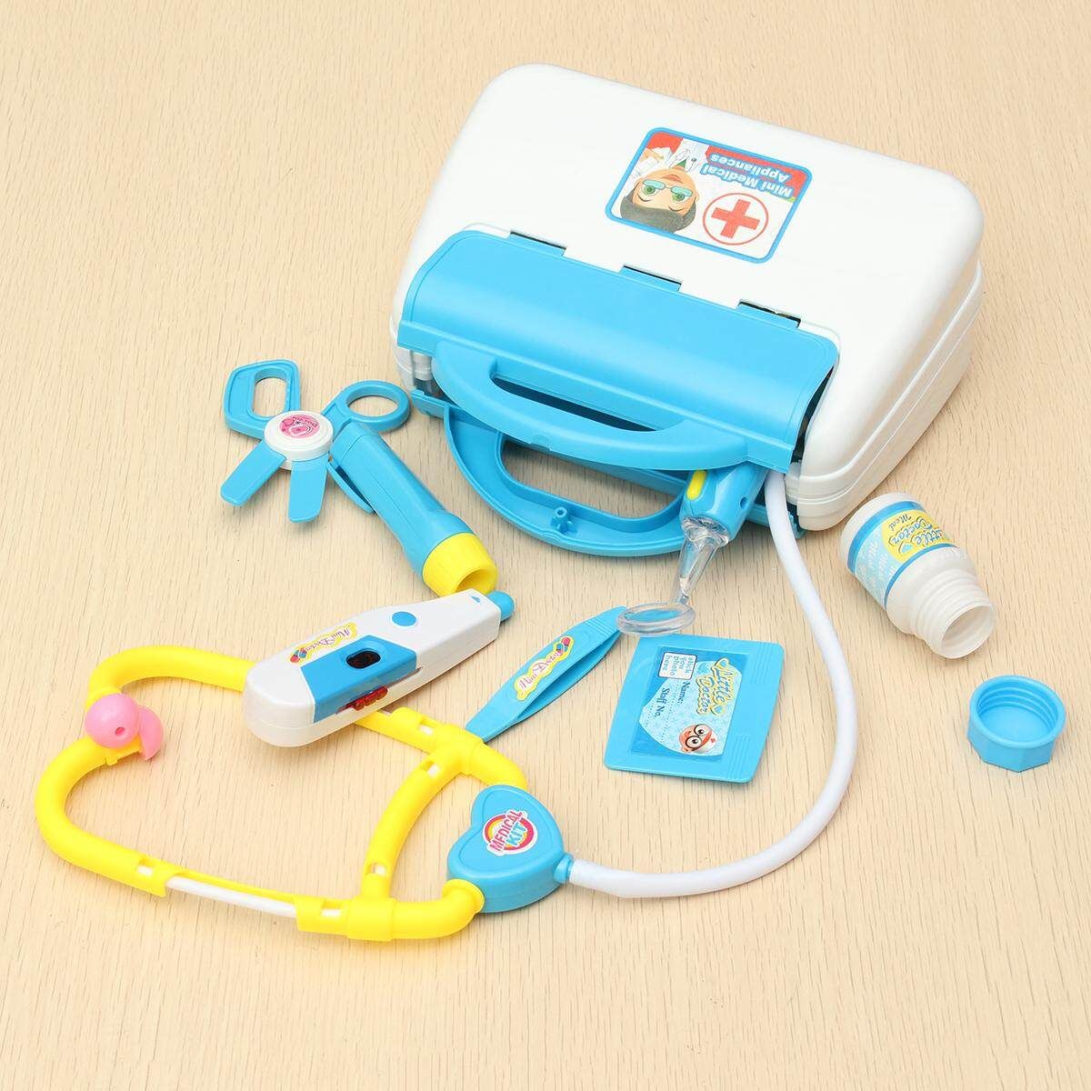 Descriptions 100%BrandNew Type: Doctor Kit Material:ABS :Blue Size:As the picture show :2*L1131 batteries(Included) Package size:App 22cm*20cm*9cm PackageWeight:App480g Packageincluded: 1pc Name badge 1pc Scissors 1pc Otoscope(2*L1131 batteries) 1pc Flashlight(2*L1131 batteries) 1pc Hammer 1pc Syringe 1pc Glasses 1pc Scalpel 1pc (2*L1131 batteries) 2pcs Bottle 1pc Plate 1pc Reflector(2*L1131 batteries) 1pc Stethoscope(2*L1131 batteries) 1pc Tweezers 1pc Case Feature: Itcomeswith15differentmedicaltools. MedicalBoxfitsalltoolsforeasystorage.Batteriesareincluded. Theplaytoolsincludestethoscope,reflexhammer,otoscope,syringeneedle,clamp,scissor,, Possibly the perfect role playing set for the aspiring professional. Comes in a snap-shut doctor's case (Whenyoupressthestethoscope: Theheartlightsupandmakesheartbeatsounds. Thesyringehasspringaction. TheReflectorotoscope,thermometerandflashlightlightup. Theclampcanbeusedtograbitems.) Note: 1.Therealcoloroftheitemmaybeslightlydifferentfromthepicturesshownonwebsite