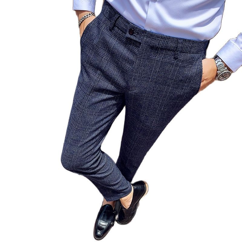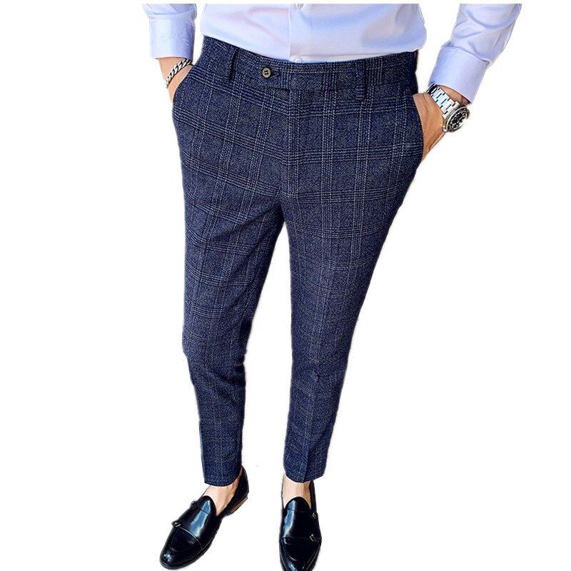 1X Blue Men's Slim Business Pants British Style Slim Fit Classic Formal Dress Pants for Men Wedding Party Trousers 29-38