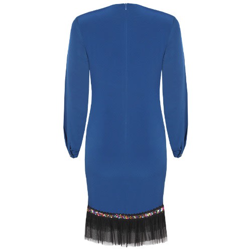 Buy Blue Multicolour Sequins Long Sleeve Necklace Shift Dress in Nigeria