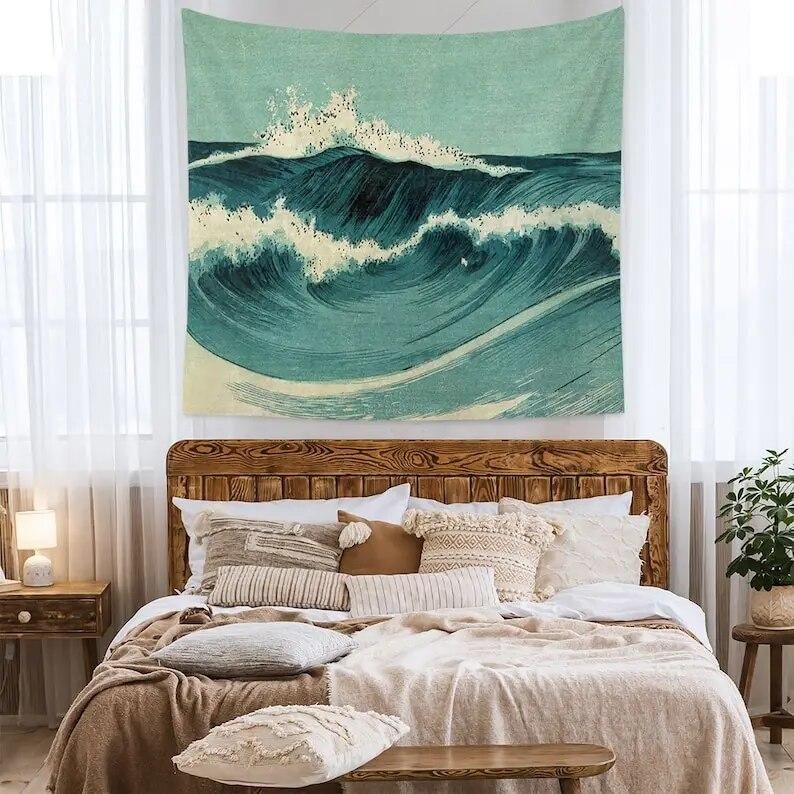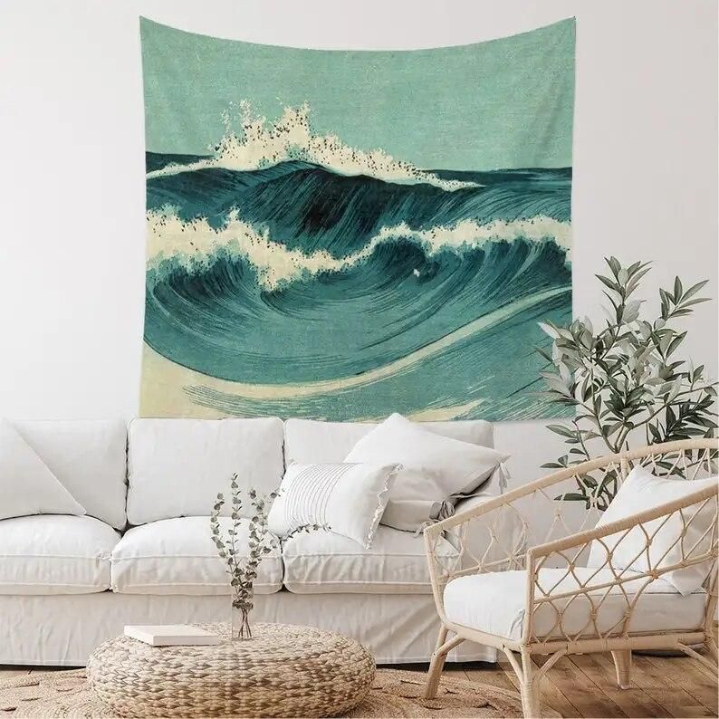 Buy Blue Ocean Waves Wall Art Tapestries,Nature Landscape Tapestry,Bedroom/ Room Wall ,Background Cloth,Modern Art Wall Hanging,Gift in Nigeria