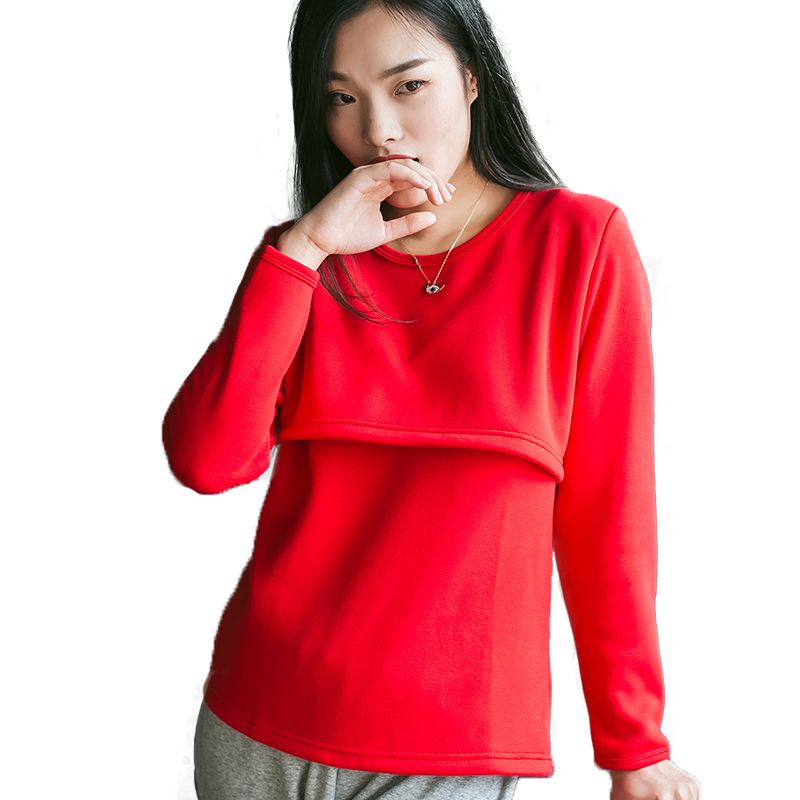 1X High Quality Flannel Winter Keep Warm Hoodies Pullover Long Sweater For Nursing Mothers Maternity Clothes 9117P