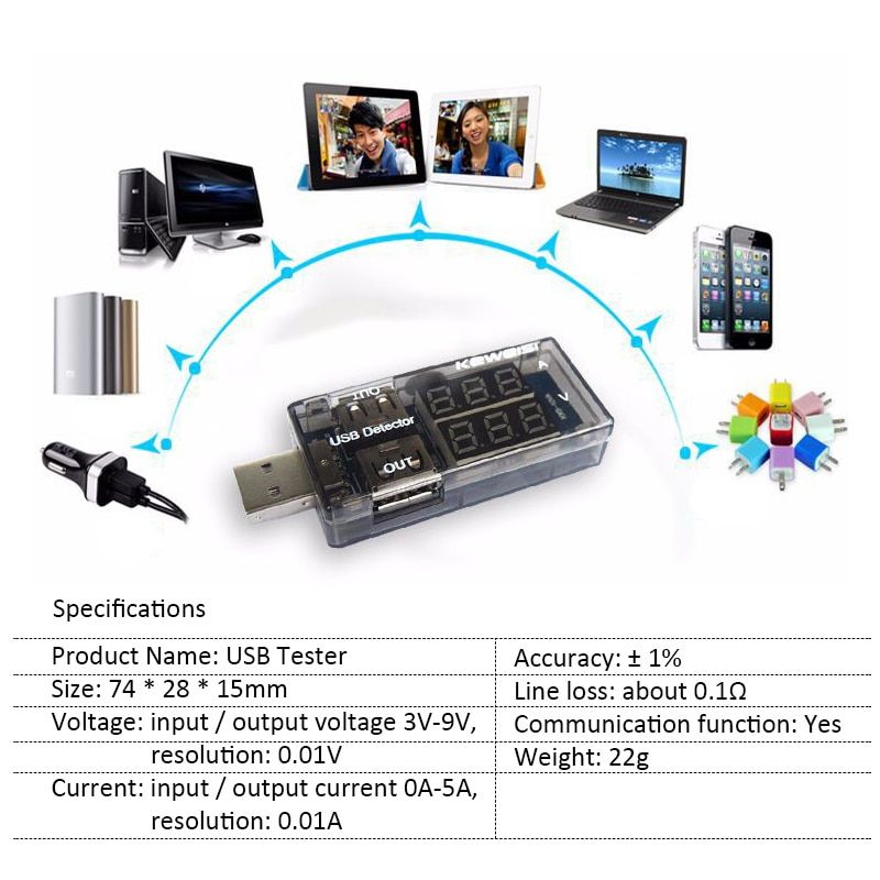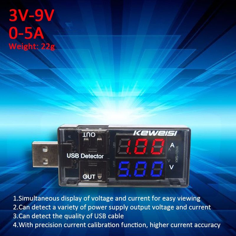 1. Simultaneous display of voltage and current data for easy viewing; 2. Can detect a variety of power output voltage and current; 3. Can detect USB cable quality; 4. With precise current calibration function, the current accuracy is higher.