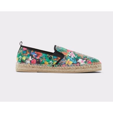 Espadrilles made of fabric with matching embroidered lettering. Comfortable, fresh summer footwear with an Aldo caption on the back. The particular design effect involves an extremely complex process with several stages that greatly elevates the quality of the footwear. Iconic look