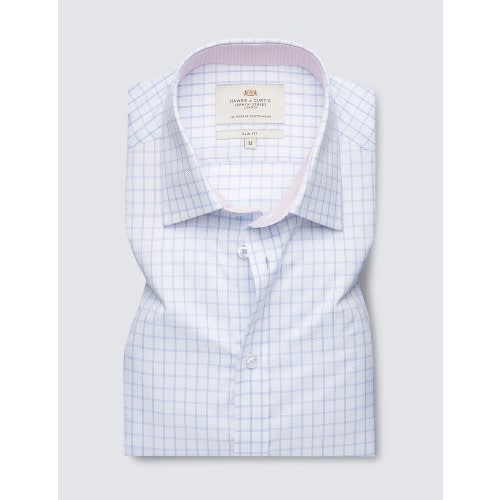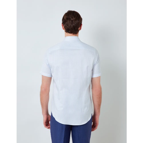 Buy Blue & White Textured Check Slim Fit Short Sleeve Shirt in Nigeria