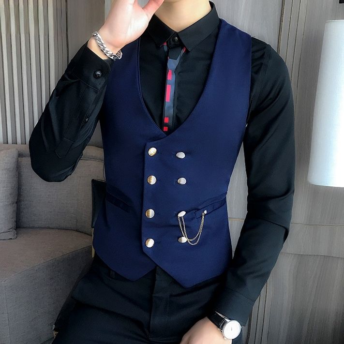1X Fashion Men Wedding Suit Vests Double-breasted Fashion Classic Waistcoat for Men Business Casual Barber Work Vest Male Outwear