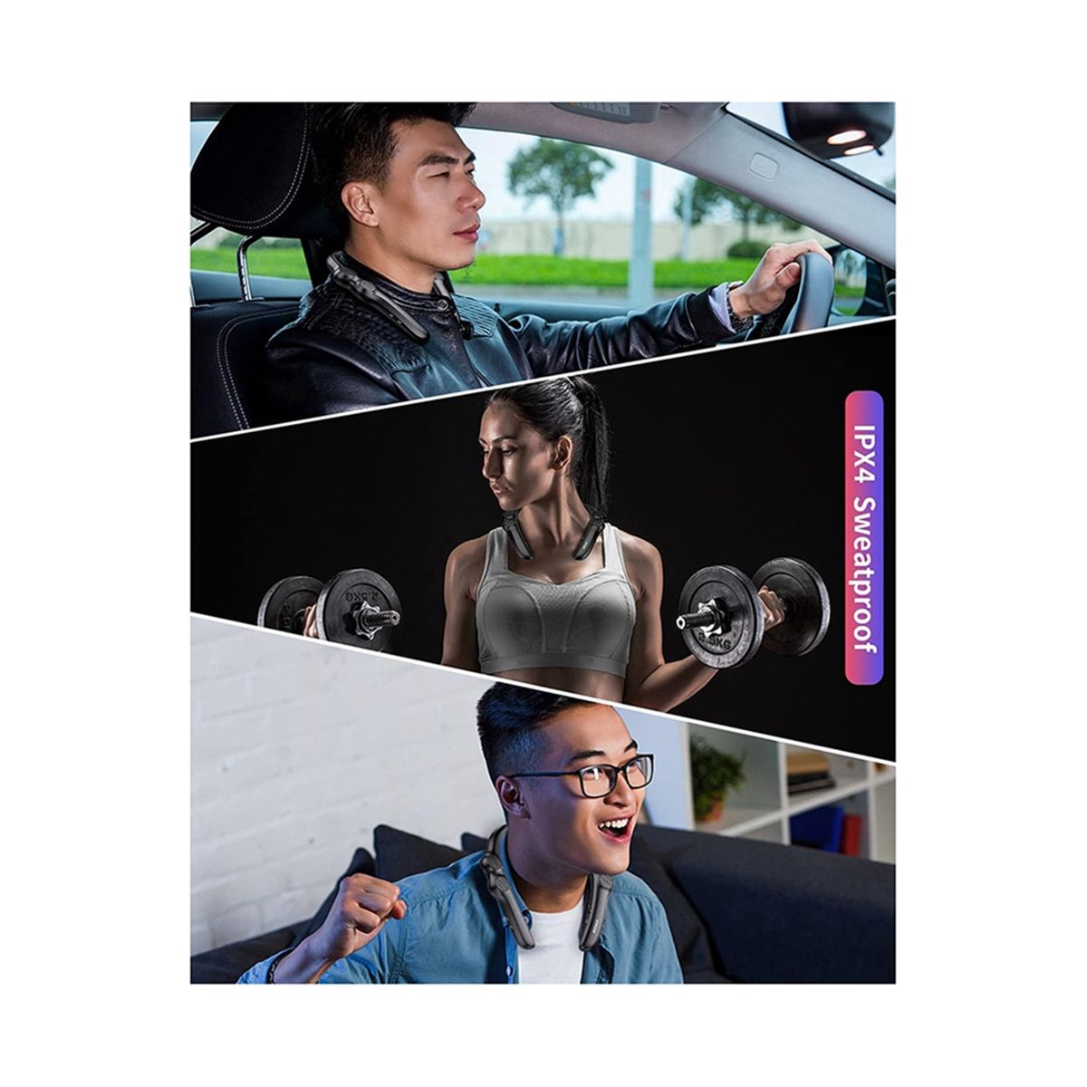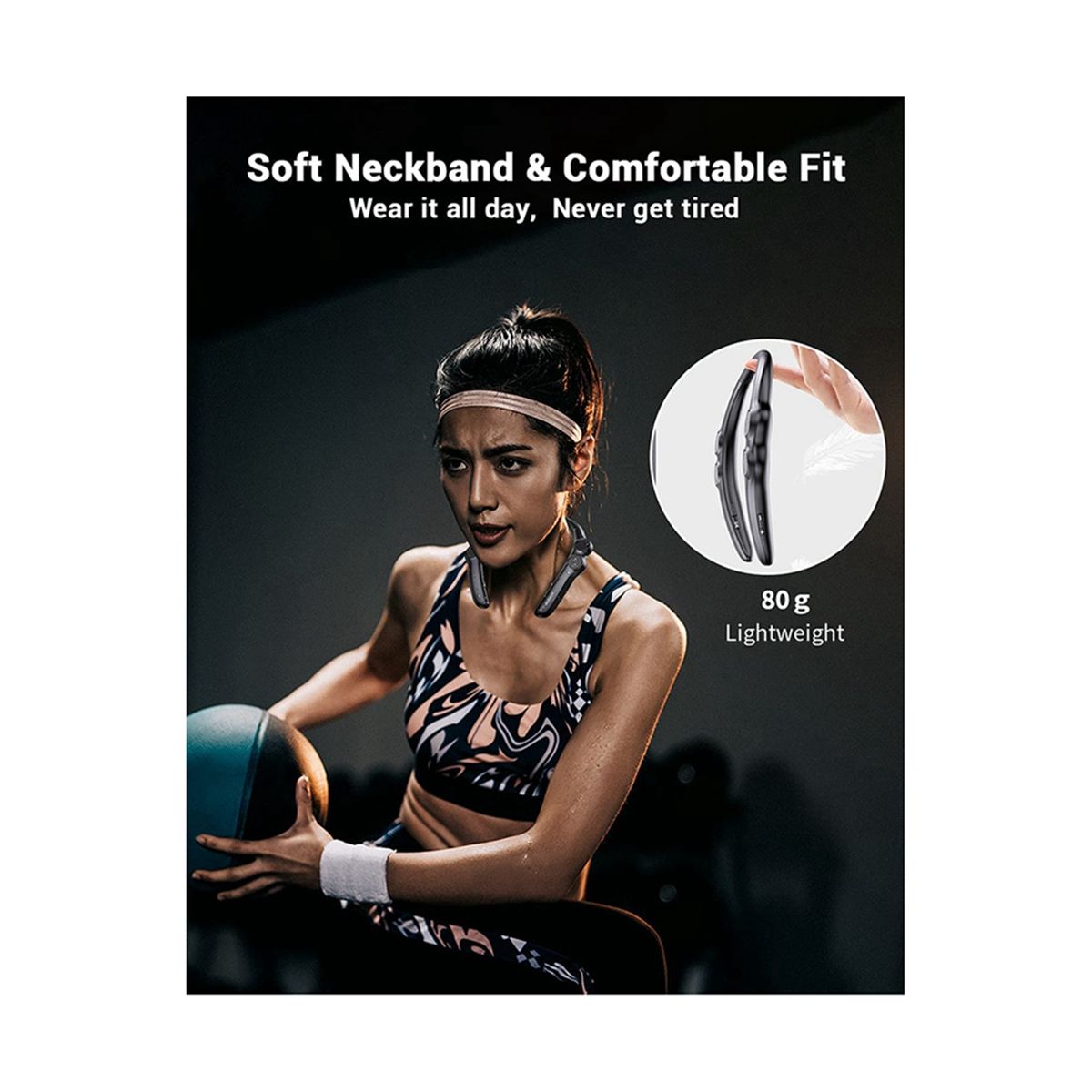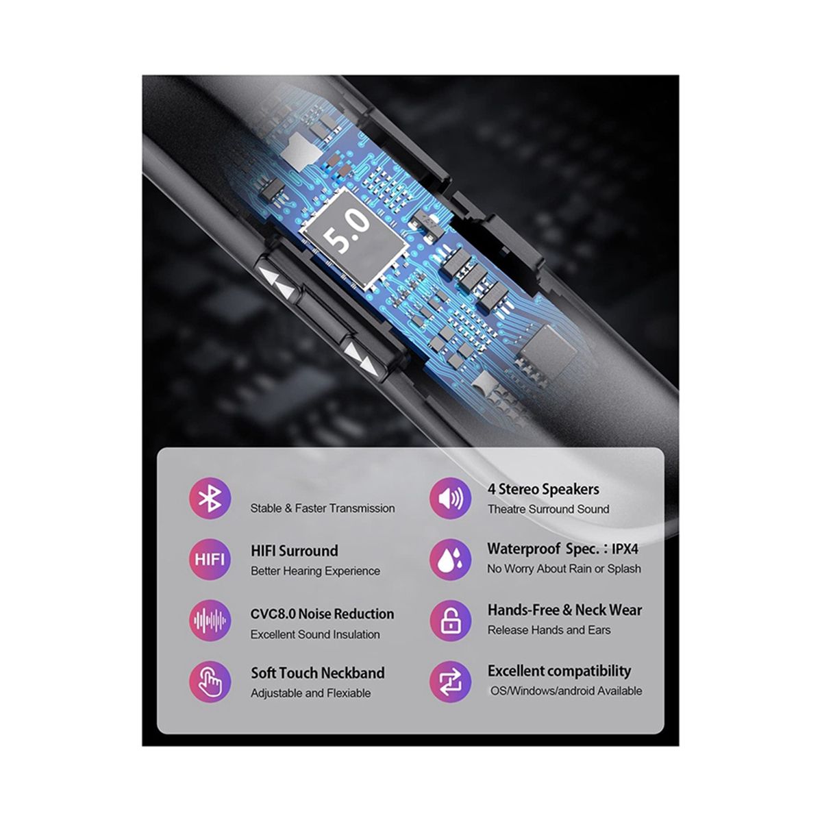 [FLEXIBLE, COMFORTABLE AND WEARABLE DESIGN] Comfortable wearing feeling based on ergonomics,made with flexible rubber neckband,once you put this band around your neck, you'll hardly know you're wearing it and get an unique immersive sound experience.