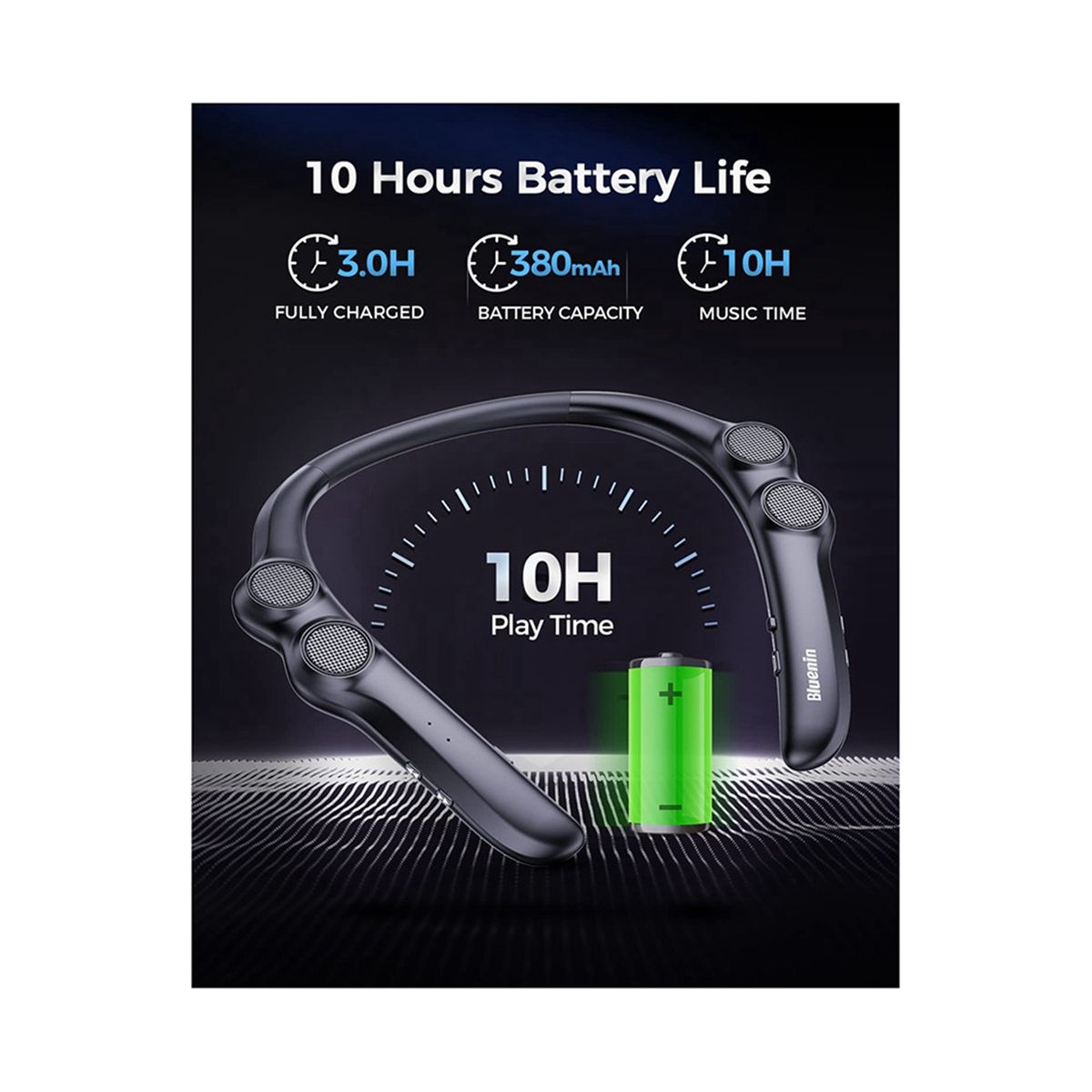 [TWO 380mAh BATTERIES & DOUBLE YOUR MUSIC TIME] No more worries about shortage of power since the speaker synergies latest power management technology and two 380 mAh high-efficiency Li-ion batteries,provide up to 10 hours music time with a single charge.
