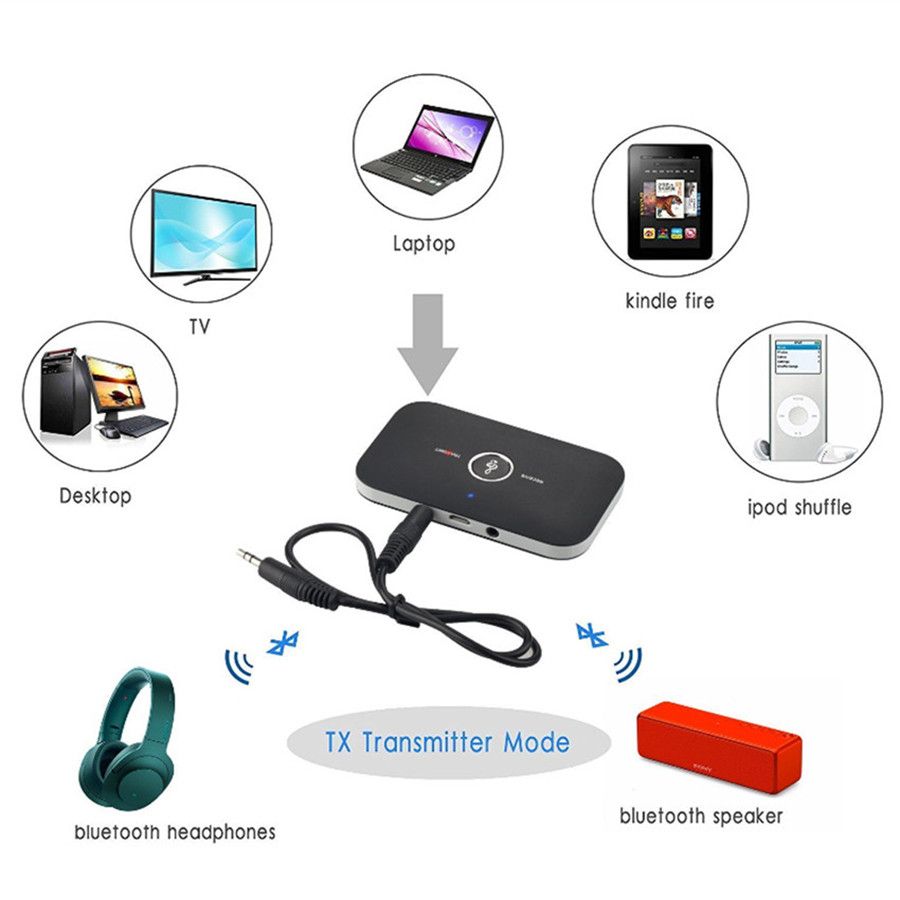 Features:2 in 1 Bluetooth Transmitter & Receiver, as a Bluetooth Audio Transmitter, B6 is specially designed for the Audio Devices (such as MP3, MP4, TV and PC, etc.) without Bluetooth function. You can connect the Bluetooth Transmitter to the audio devices without Bluetooth function via the included 3.5mm Audio Plug, changing these audio devices into Bluetooth-enabled audio devices, and making it work with Bluetooth-enabled Headset and Speaker; as a Bluetooth Audio Receiver, B6 is specially designed for Car Stereo systems and Home Audio System. It can change the traditional Car Stereo systems and Home Audio System into Bluetooth-enabled ones, and easy to pair with Bluetooth-enabled Smart Phones, laptop, tablet, etc. With this product, you can greatly enjoy music from your phone, laptop, tablet without the hassle of cables.