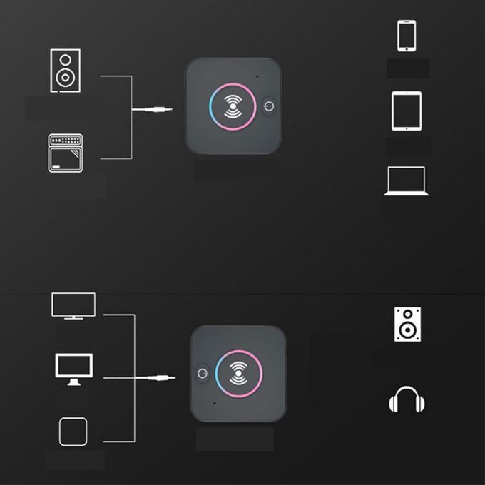 Due to the different monitor and light effect,the actual color of the item might be slightly different from the color showed on the pictures.Thank you!Bluetooth Transmitter;Bluetooth 5.0 Transmitter Receiver Adapter Audio;Receiver Adapter Bluetooth Aux high definition;Home Stereo Music System with 3.5 mm RCA AUX;RCA PC TV Tablet Speaker Home Car Sound System;Audio Outputs to Speakers Low Latency Tablet