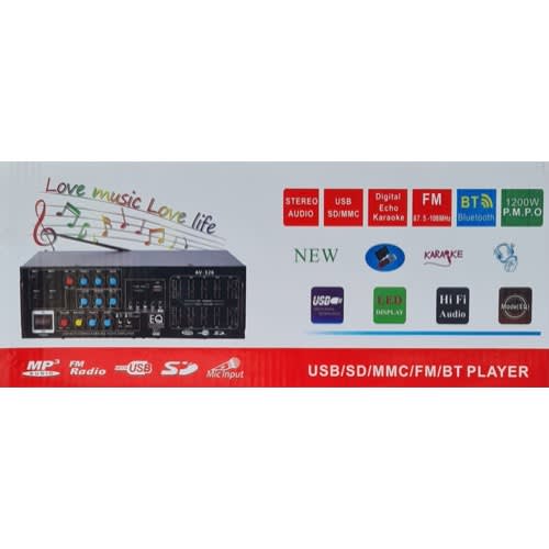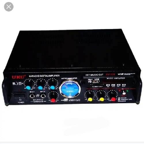 AV-326C is a professional karaoke stereo amplifier,its a hi-fi stereo karaoke audio amplifier.it's well designed and has many functions that gives you the best quality audio sound production,it's easy to use can be used anywhere indoor and outdoor programs it has Bluetooth,USB/FM,comes with 2 mic pots mic1 and mic2 treble,bass and balance also has sd card pot.