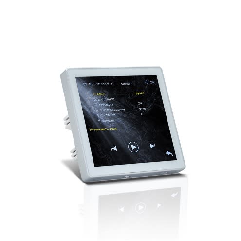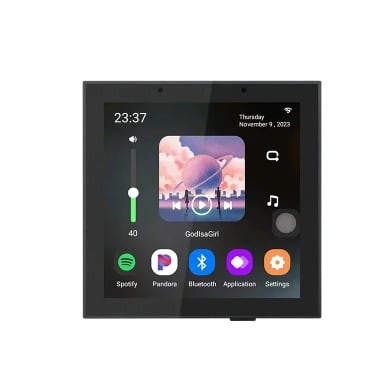 Capacitance Full Screen Touch4-inch IPS Display, 480*480 Resolution Android 11 System, 1+8G Built-in TUYA applications4-core processor CORTEX A7@1.2Ghz, CS8618C amplifier chip Output Power;8ohm 4 Channels*25WNetwork: Support 2.4G + 5G WIFI,WIFI6.0Two way BluetoothInernet Radio, TF, OTG-USB disk, Video player Audio in, Audio out, Timer function, Door bell,Smart home control with RS485 port, RJ45 port, remote controlAC110-250V, with standard cover. Installation: 86 standard wire box, front wallFEATURES Android 11 System, 1+8G Built-in TUYA applicationsTwo way Bluetooth Built-in Google Play Store, YouTube, Spotify