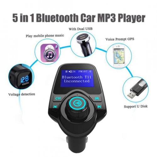 This device is a bluetooth MP3 Player developed for in car used, it equips with professional high-performance bluetooth module and MP3 decoder chip.It can play and transmit the music from TF card to car stereo via FM radio signal.It can transmit the music from your mobile to car stereo via bluetooth.It can be used as a hands-free car kit during the driving via bluetooth.This device transmit signal by wireless method, no need to modify anything in car.It can be used both as the music player in entertainment purpose or hands-free car kit for the safety driving purpose. Specification:Bluetooth version:V3.0+EDRFrequency:2.402-2.480GHZSensitivity:-42db +/-3db 360Voltage: 5V +/-0.5Working current: 45mA(max)Standby current: 25mA(max)Effective distance: 5mRF output: 4dBmColor: black