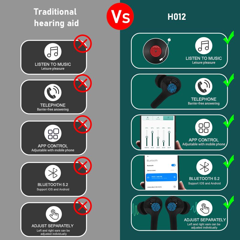 Rechargeable Bluetooth Hearing Aids Adjustable Smart Touch Sound Amplifier