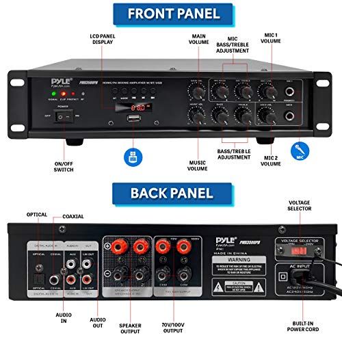 - 6 INPUTS: The digital amp box mixer amplifier supports FM radio, MP3 audio playbak & other external devies. It is equipped w/ USB reader, AUX inputs, 2 mi inputs, optial & oaxial digital signal inputs, AC-3 inputs, line out, and V/V outputs