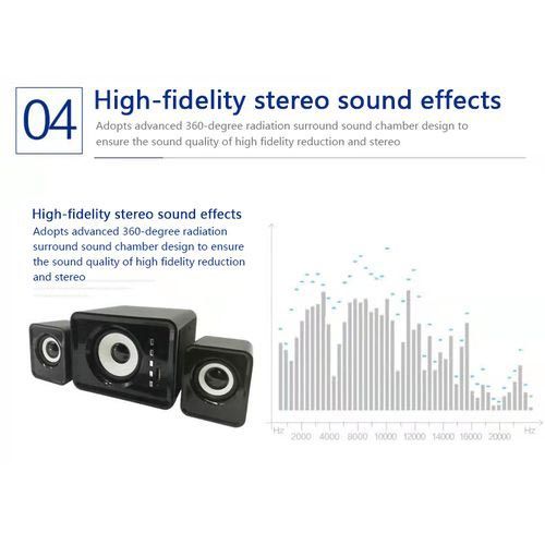 Steady and undistorted bass sound effect with stereo sound surrounding. Equipped with intelligent frequency division technology, brings you wonderful music.