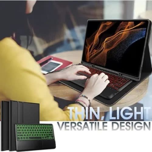 Premium material leather holster- Ultra-thin Bluetooth keyboard built-in trackpad- detachable flip cover- with Pencil Holder- Bluetooth connection- iPad Fixed bracketProtect your New Samsung Tab S6 Lite 2020 with this Fintie Case at all times! The Case sports a simple and classy design. Because the cover is uniquely designed to flip back and transform the case into a comfortable viewing stand that offers three different viewing angles, this capability allows the viewer to use the new tablet hands-free whatever your position may be without strain whether it is being used for viewing or for a keypad. All features of the new tablet are accessible even with the case on. It even includes a camera hole so you can take pictures and videos without removing it. Watch movies and listen to music clearly with speaker holes! This one piece case will fit your new tablet like a glove. A large front Document Pocket to store your business cards, bank cards, notes, bills or other personal belongs while on the go.Compatibility:This case is specifically designed for Samsung Galaxy Tab S6 Lite 10.4-Inch Model SM-P610/P615 2020 Release Tablet