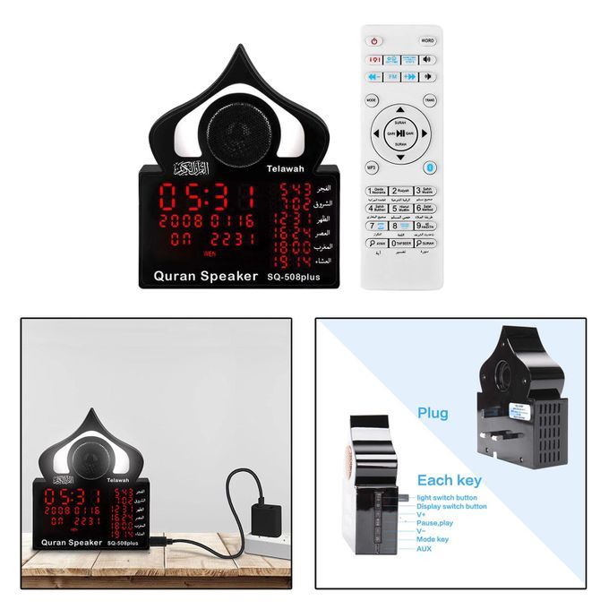 Multifunctional Quran Speaker Bluetooth M3 Player Radio, digital LED Clock and Touch Sensor Night Light