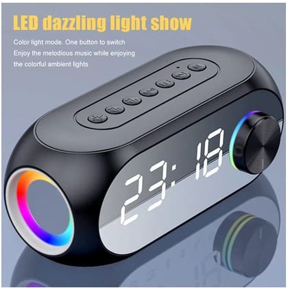Bluetooth Speaker with clock Features :Humanized alarm clock function, customized double alarm clock, to meet different needs. Small night light design, mirror clock display, battery clear and visible, LED clear display. Support BT wireless playback, TF card playback, AUX playback, and enjoy different music playback methods.